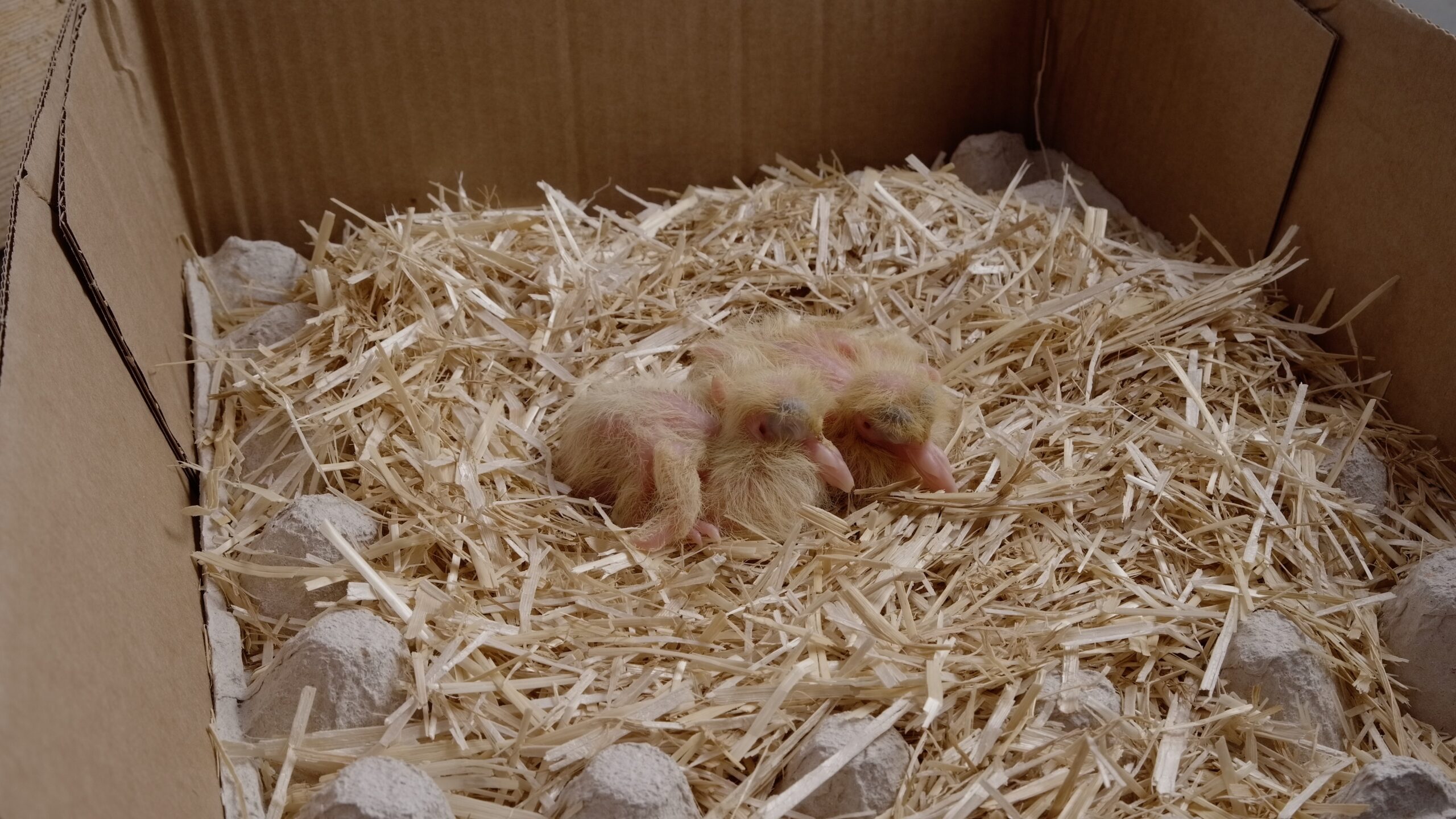 La seconde étape a lieu lors de la ponte et de l’éclosion des petits. En effet en pigeon, pas d’incubateur. Les œufs sont couvés par leurs propres parents dans leur nid. Le pigeon est une espèce nidicole, c’est-à-dire que les jeunes sont incapables de se nourrir et se déplacer seuls à la naissance. Ainsi quand le pigeonneau éclos il reste dans son nid d’origine jusqu’à son sevrage aux environs de 28 jours. Ceci permet alors aux animaliers d’enregistrer cette nouvelle éclosion sur une application dédiée et attribuer une bague individuelle à l’animal nouvellement éclos. On connait alors ses parents qui sont les reproducteurs ayant pondu et couvé les œufs dans ce nid et qui vont ensuite assurer le nourrissage du jeune jusqu’à son autonomie alimentaire à un mois.